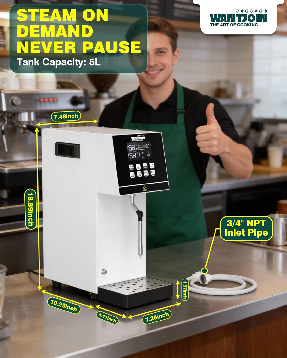 Be the first to review “WantJoin Commercial Milk Frother – 2000W Milk Steamer for Latte Cappuccino Coffee, Beverage Heater with Hot Water Dispenser & LED Display, Hotel Use (White)”